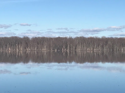 | Relatively high lake levels on April 25, 2019, invading wetlands near Alburgh, Vermont, as the lake should do every spring. The cycle of high water each spring helps the ecosystem. |